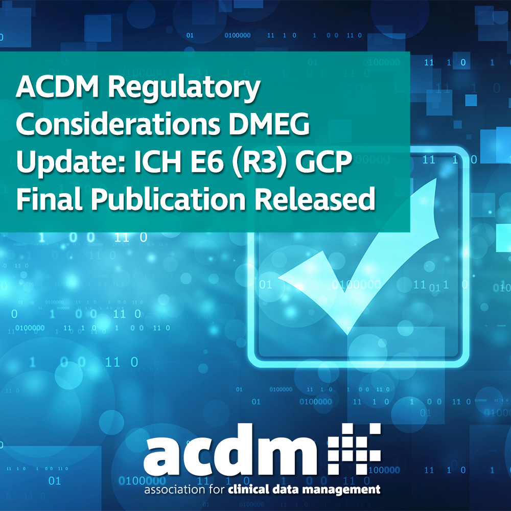 ACDM Regulatory Considerations DMEG Update: ICH E6 (R3) GCP Final Publication Released